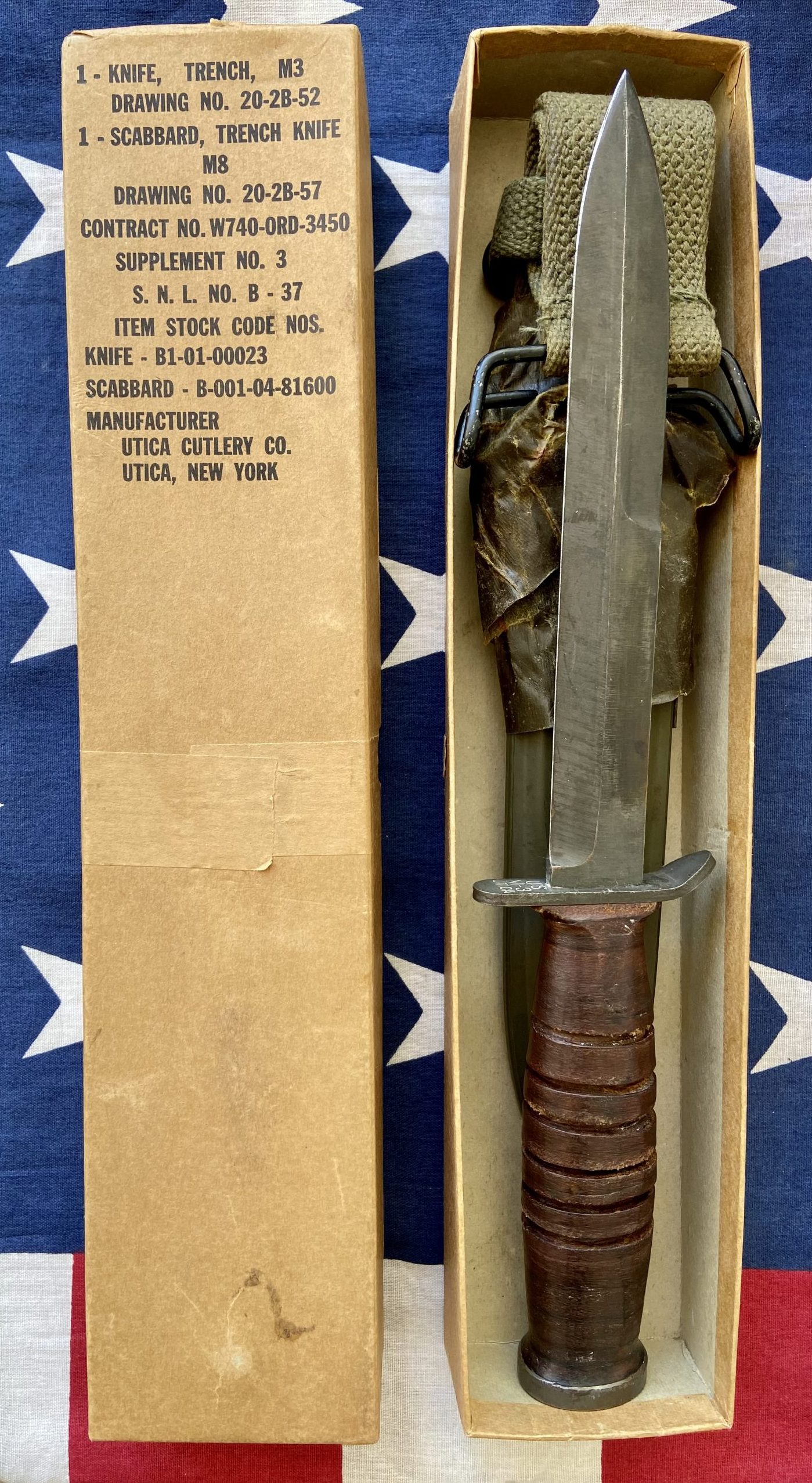 Utica modèle garde dans sa boite d’origine avec son fourreau M8 second type “B2/9N” (Collection personnelle)