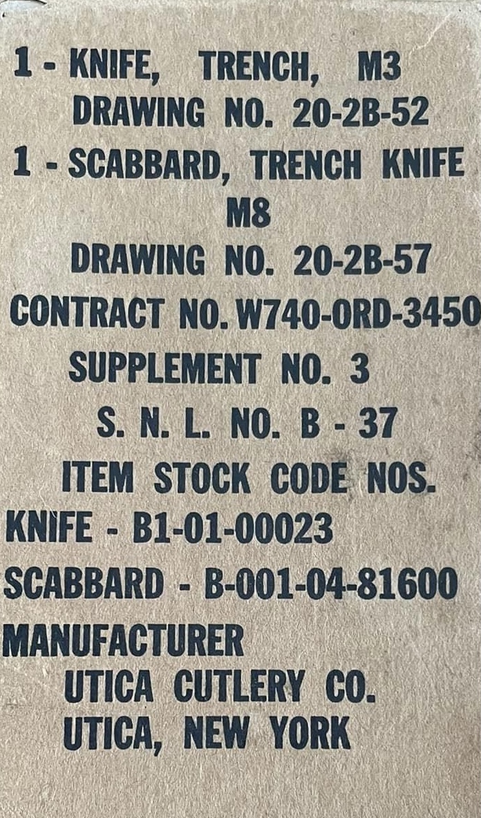 Détail du marquage des boites Utica. Vous noterez le numéro de contrat 3450 identique à celui identifié plus haut dans le détail du contrat. (Collection Personnelle)
